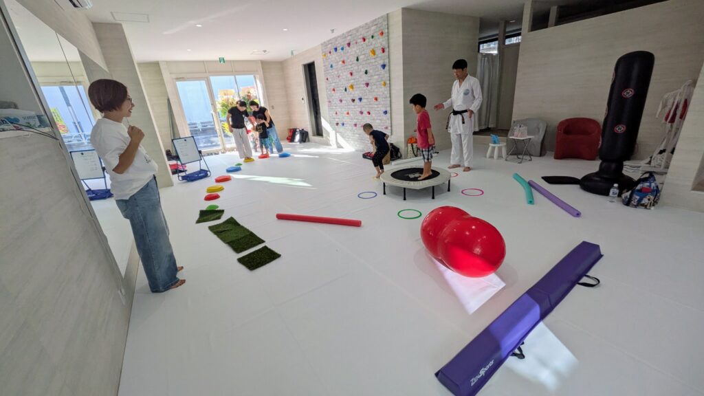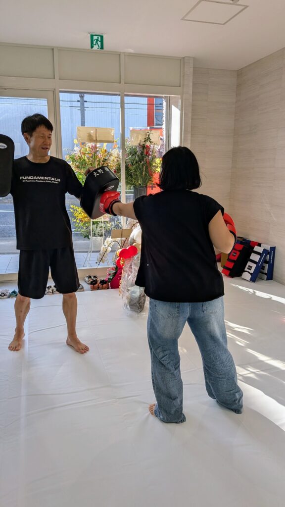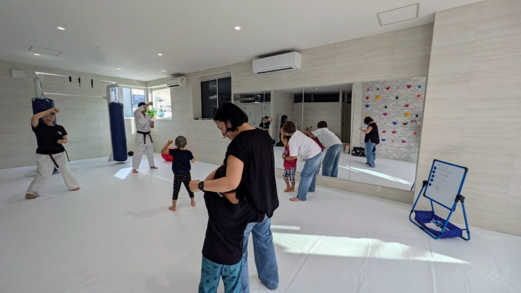 終わった後は急遽、キッズたちのママのキックボクシング体験レッスン。