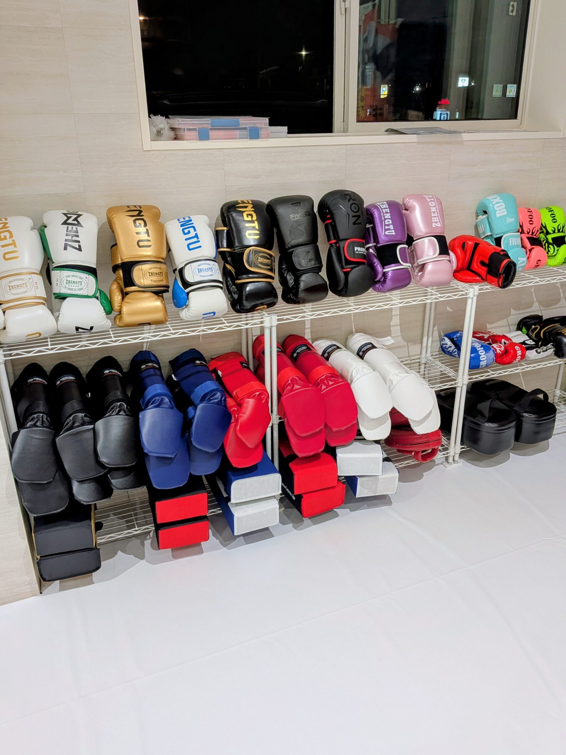 BLISSではキックボクシング用のミットやグローブは無料でレンタルできます。