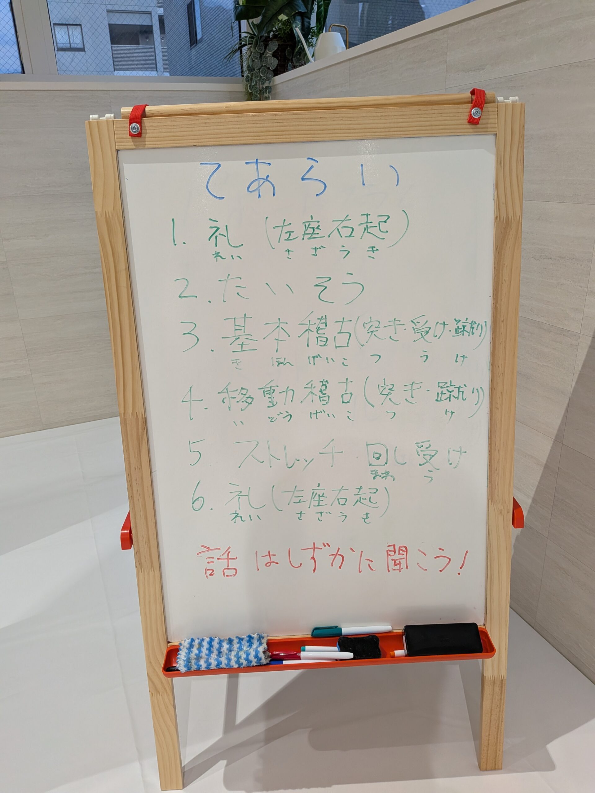 BLISS花小金井ではホワイトボードにトレーニングメニューを書いてお子様にもわかりやすく説明しています。