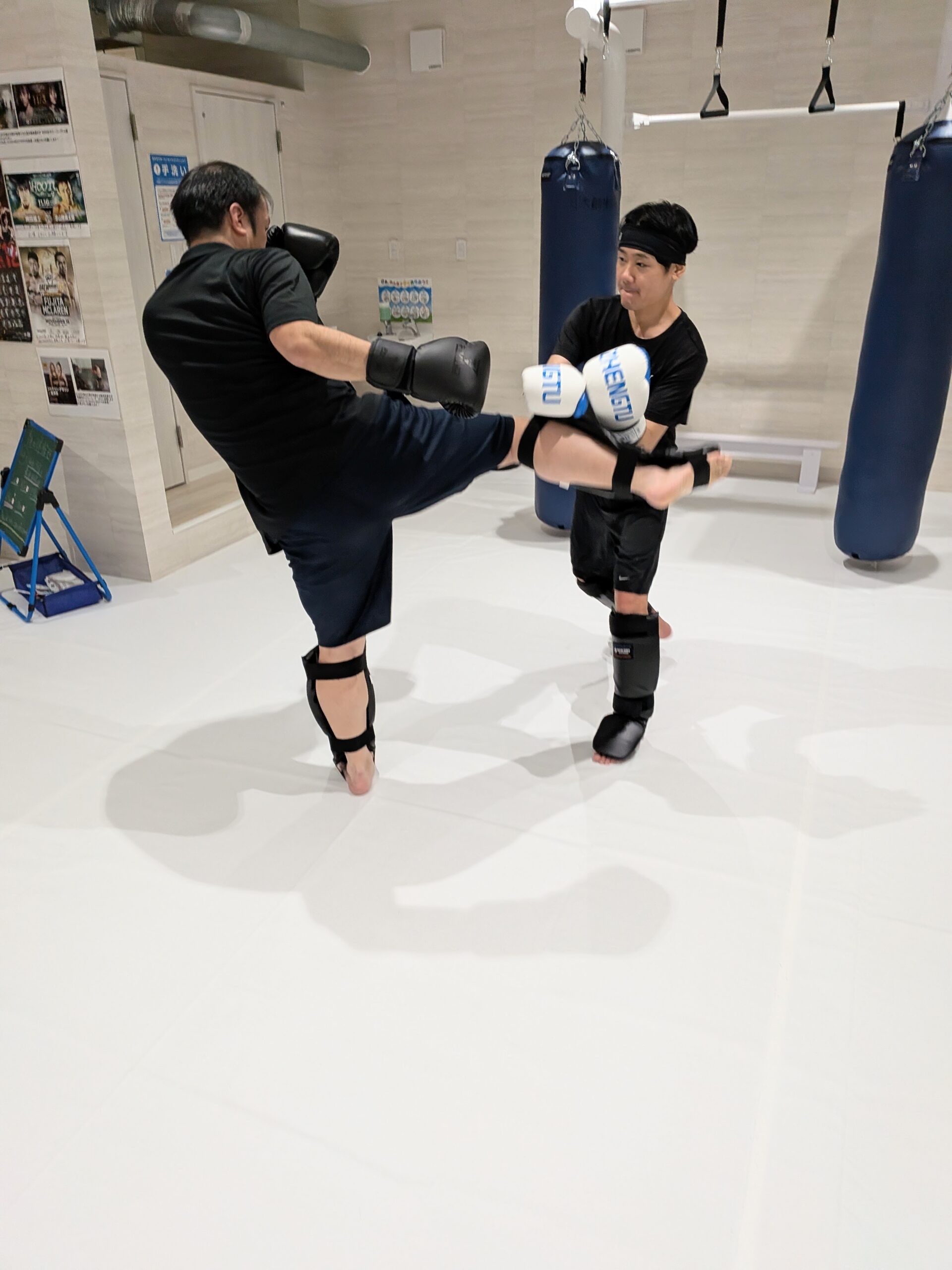 キックボクシングビギナーでは右の蹴りに対するデフェンスを中心に行いました!
