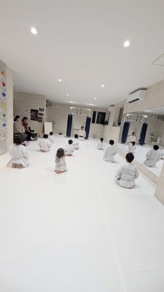 BLISS花小金井キッズ空手では自分と向き合う時間を作るために黙想を長めにしています。